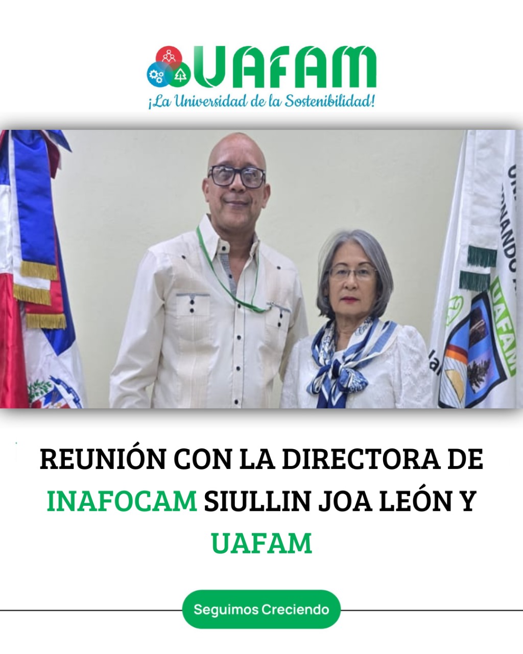 La directora ejecutiva del INAFOCAM visita la Universidad UAFAM para fortalecer la colaboración interinstitucional Jarabacoa, La Vega, R.D. – La directora ejecutiva del Instituto Nacional de Formación y Capacitación del Magisterio (INAFOCAM), maestra Siullin Joa León, realizó este sábado una visita oficial a la Universidad UAFAM, donde fue recibida por las autoridades académicas encabezadas por el rector, doctor Wellington Gómez, junto a sus vicerrectores y otros miembros de la alta dirección universitaria.