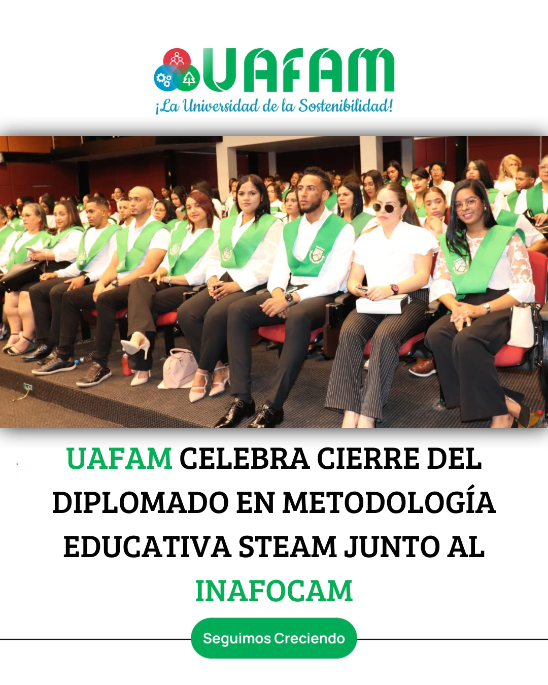 El pasado miércoles 15 de octubre de 2025, la Universidad Agroforestal Fernando Arturo de Meriño (UAFAM) realizó el acto de cierre del Diplomado en Metodología STEAM, desarrollado en colaboración con el Instituto Nacional de Formación y Capacitación del Magisterio (INAFOCAM), en la Regional de Educación 06, La Vega, Espaillat.